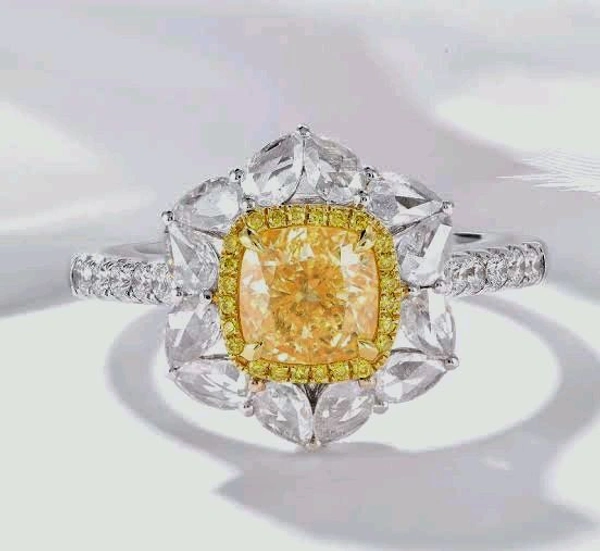 Yellow LGD Diamond Cushion Shape, Surrounded by Pear Shape LGD Diamond - Ring