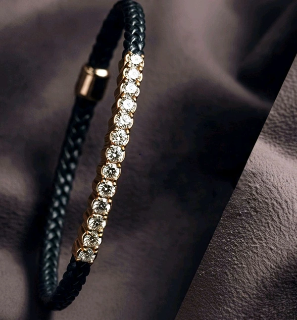 Diamond & Artificial Leather Black Bracelet